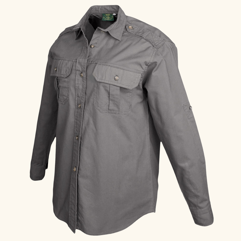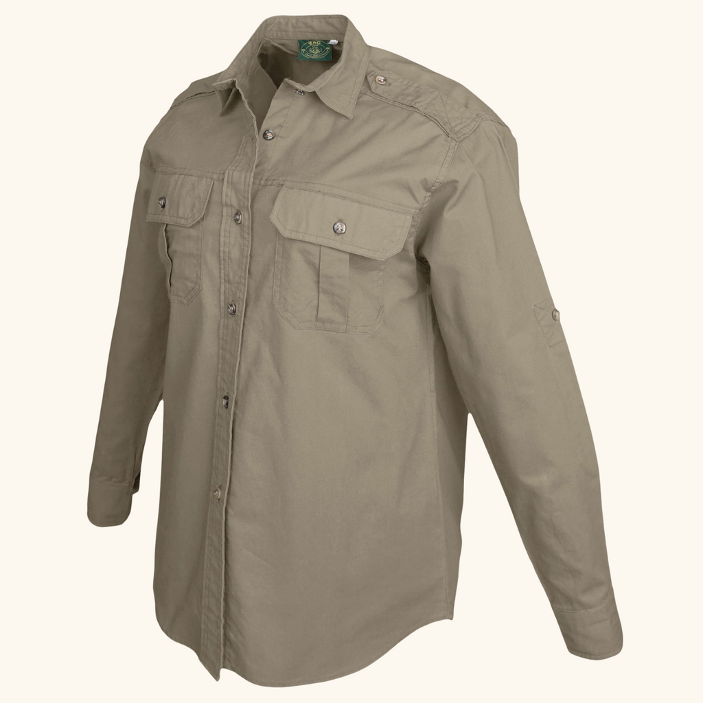 Denna klassiska Safari Skjorta med långa ärmar är en oumbärlig del av utrustningen för den seriösa safari- och jaktentusiasten. Tillverkad för att stå emot Afrikas tuffa klimat och utmanande terräng, är denna skjorta din pålitliga partner för alla dina expeditioner.